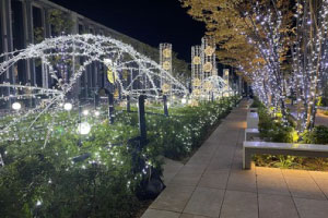 高さ300mの日本一の高さを誇るビル、あべのハルカスの館内外でさまざまなイルミネーションを展開。