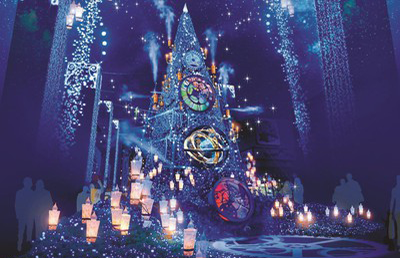 光の遊園地は“タイムトラベル”をテーマに演出の異なる4つの光の世界を堪能できる。メインエリアのタイムトラベルファンタジーストリートにある高さ約10mの「Time Travel Tree」は、新たに羅針盤のオブジェが加わり、時計の精による音と光の壮大なプログラムショーを行う。さらにマジカルラグーンを舞台に、プロジェクションマッピングの映像とダンサーによるショーを開催。点灯時間からは、24機種のナイトアトラクションも営業しており、観覧車スカイウォーカーやレッドファルコンに乗りながら光り輝くイルミネーションを満喫できる。