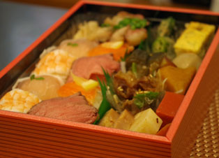 松阪牛の焼肉、ステーキ、ローストビーフ、3種類の惣菜と海鮮や野菜の煮物などの入った手まり寿司のお弁当でお手頃な価格で、いろいろお楽しみいただけるお弁当です。